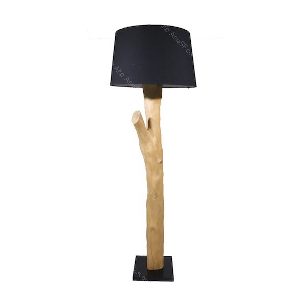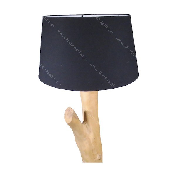 Lámpara de pie realizada con una rama de teca y una tulipa cónica de color negro. En los productos naturales, pequeñas variaciones serán aceptadas. Para personalizar este producto en medidas o acabados, no dude en contactarnos.