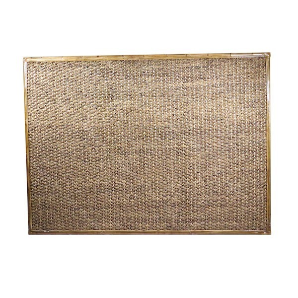 Cabecero de cama realizado con jacinto de agua seco y marco de bambú y ratán. Para personalizar esta producto en tamaño, color o acabado, no dudes en contactar con nosotros.